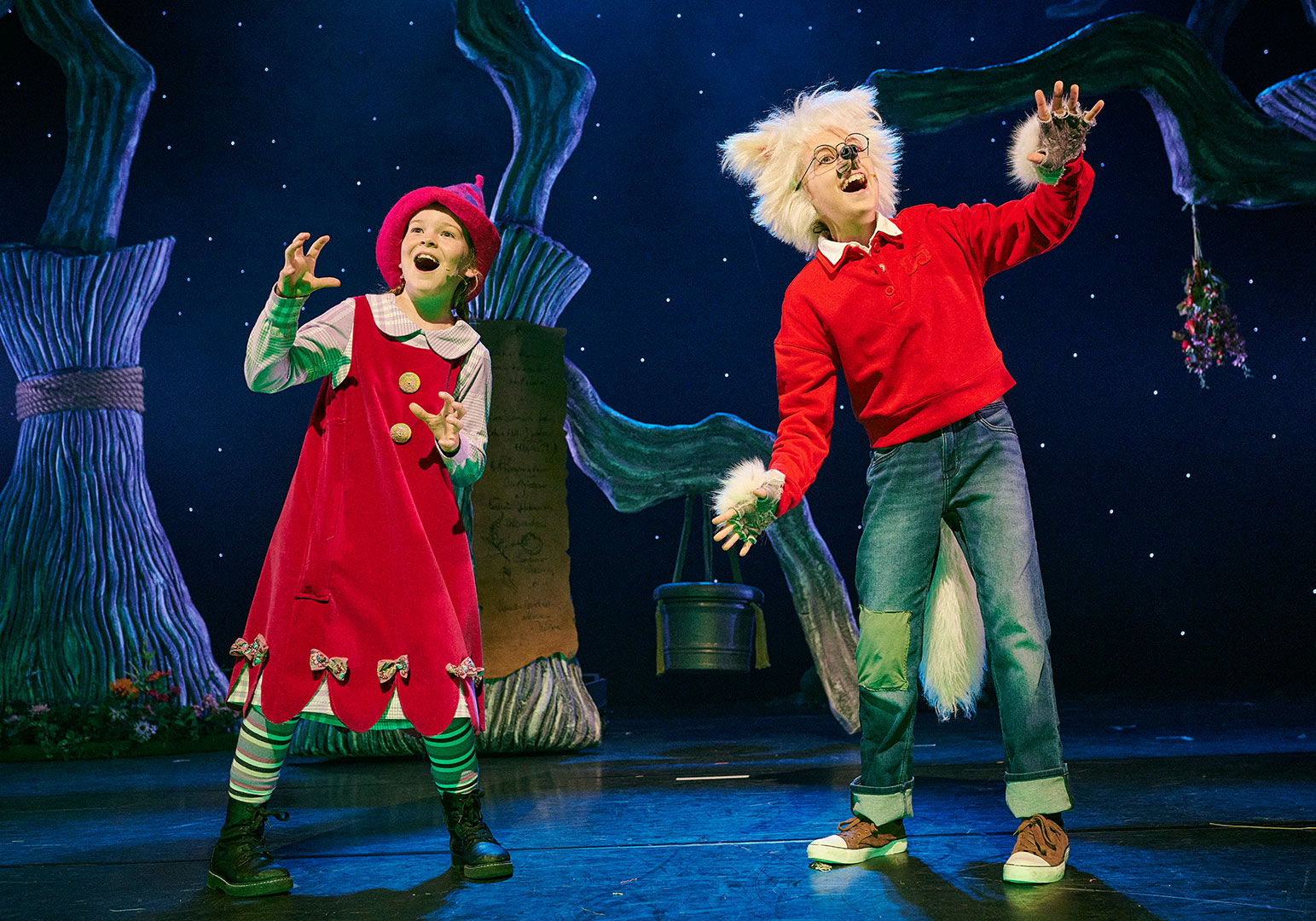 Hieronder bekijk je de scénefoto's van de familiemusical Dolfje Weerwolfje & Foeksia de Miniheks van REP Entertainment. De productie, gebaseerd op de spannende boeken van Paul van Loon, gaat op zondag 12 oktober in première in Stadsschouwburg Haarlem. De cast bestaat uit Els Damen, Sem Konijn, Baleria Bagchus en Daan Karstens. De regie is in handen van Jasper Verheugd en Natasha Schalker.