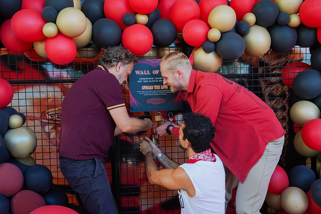 Bezoekers kunnen hun liefde delen door een slotje aan het frame te hangen en hun foto te posten met de hashtag #WallOfLove en @moulinrougemusical_nl te taggen. Elke maand wint een deelnemer 2 premium tickets voor de voorstelling.