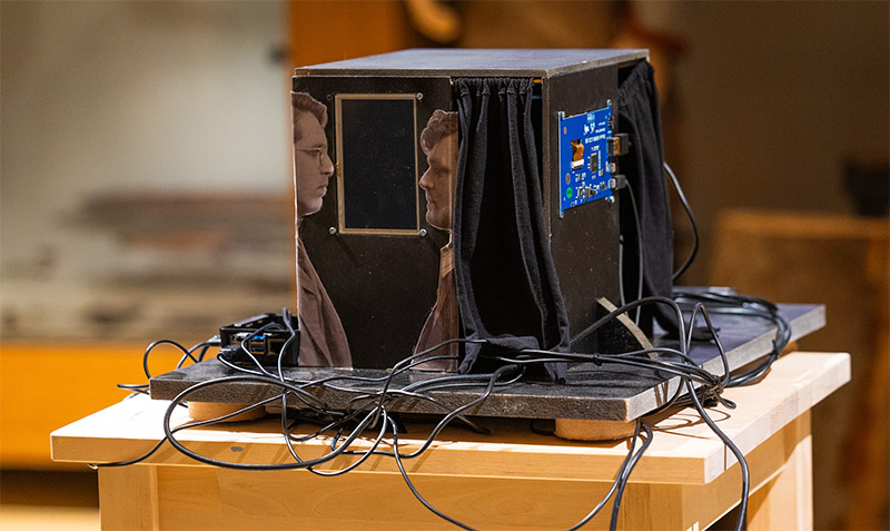 In het museum worden bezoekers uitgedaagd om zelf na te denken over dilemma’s uit de oorlog, verteld door de hoofdpersonages uit de musical 40-45. Sterre Kruijsen, ontwerper en ontwikkelaar installatie: ‘De installatie zet bezoekers letterlijk in het midden van een moreel dilemma. Door interactie en storytelling ervaren ze dat er in oorlog geen eenvoudige antwoorden bestaan – en juist dát gesprek willen we aanwakkeren.’